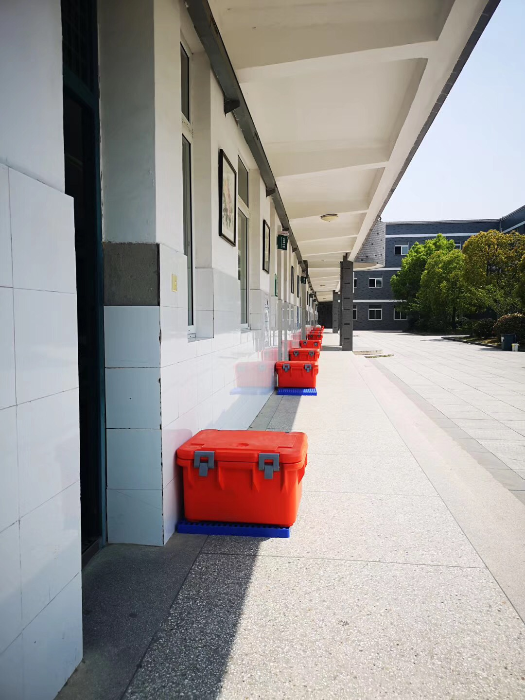 学生们吃完后有序的把餐盒放回保温箱